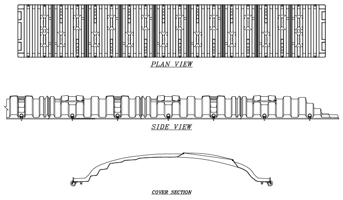 Arcosa Marine Components’ barge covers are composed of Fiberglass Reinforced Plastic (FRP) laminate. The color is molded into the surface by use of a gelcoat and requires no painting.